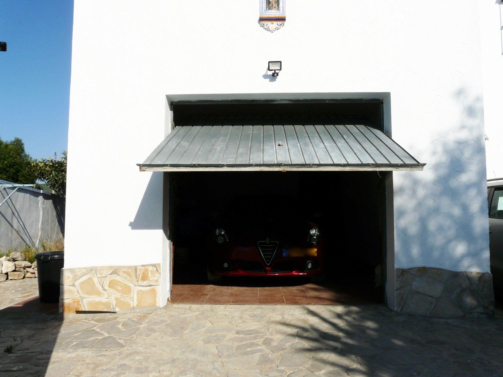 The indoor garage has space for one car. It also houses a full-size washing machine for your laundry needs.