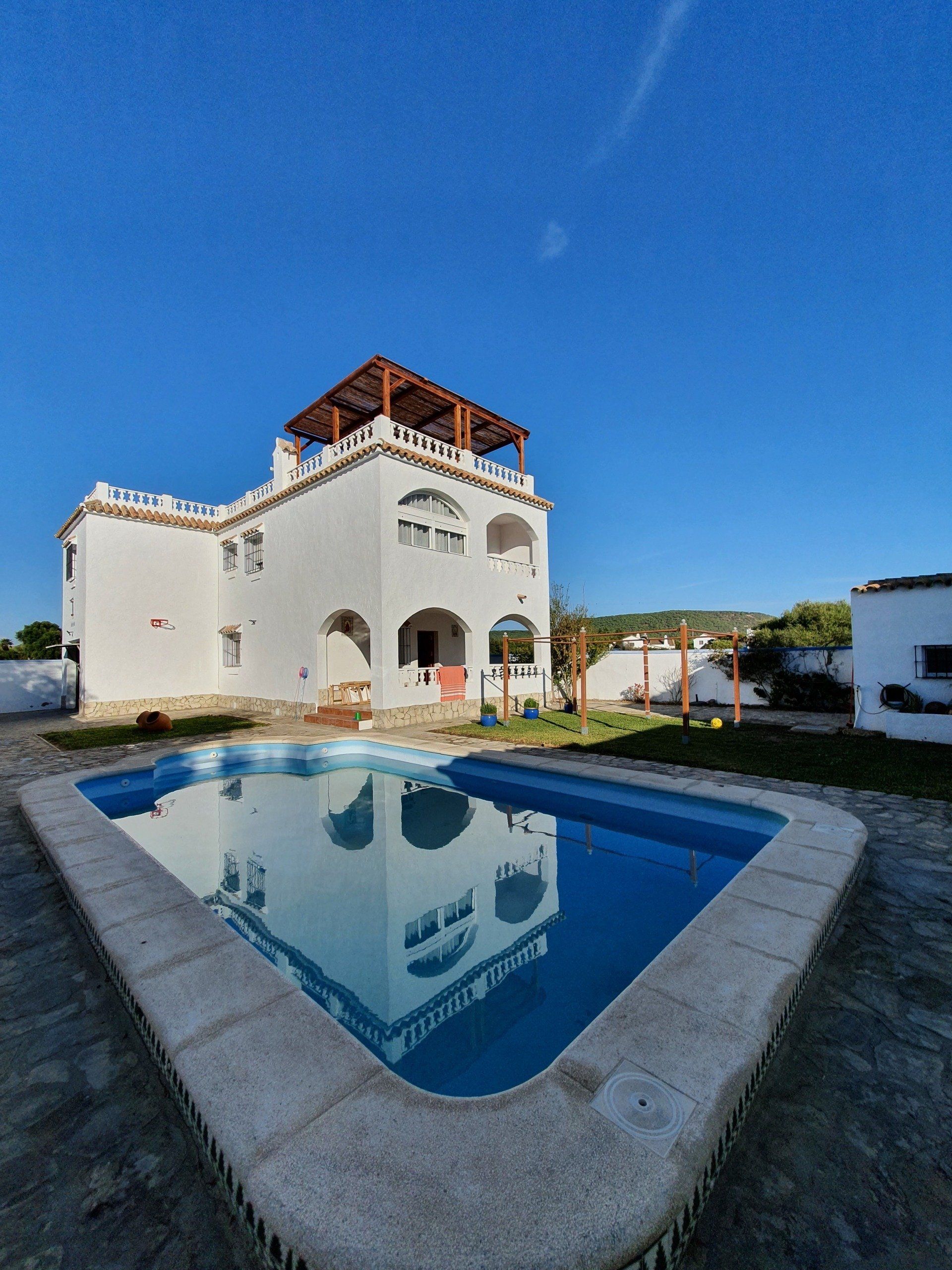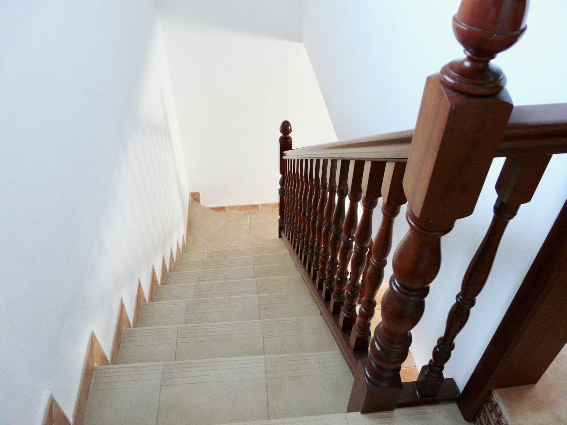 Upstairs, you will find the sleeping quarters: the main bedroom with a double bed, private balcony and ensuite bathroom, two single bedrooms and a fourth bedroom with bunk beds accomodating 4 persons. The latter share a bathroom across the hallway. The full-length roof terrace with shaded area is accessed from this floor.